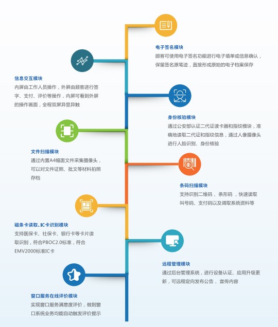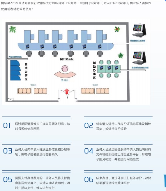 適用于各行各業(yè)智慧營業(yè)廳、行政服務(wù)大廳的綜合業(yè)務(wù)窗口柜面、各部門]的專門業(yè)務(wù)窗口柜面、社區(qū)服務(wù)站等業(yè)務(wù)辦理窗口柜面。