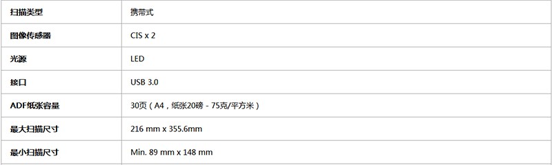30ppm / 60ipm雙面掃描(USB3.0)30頁自動文檔進紙器 自動顏色、紙張尺寸及空頁面檢測光學分辨率600dpi